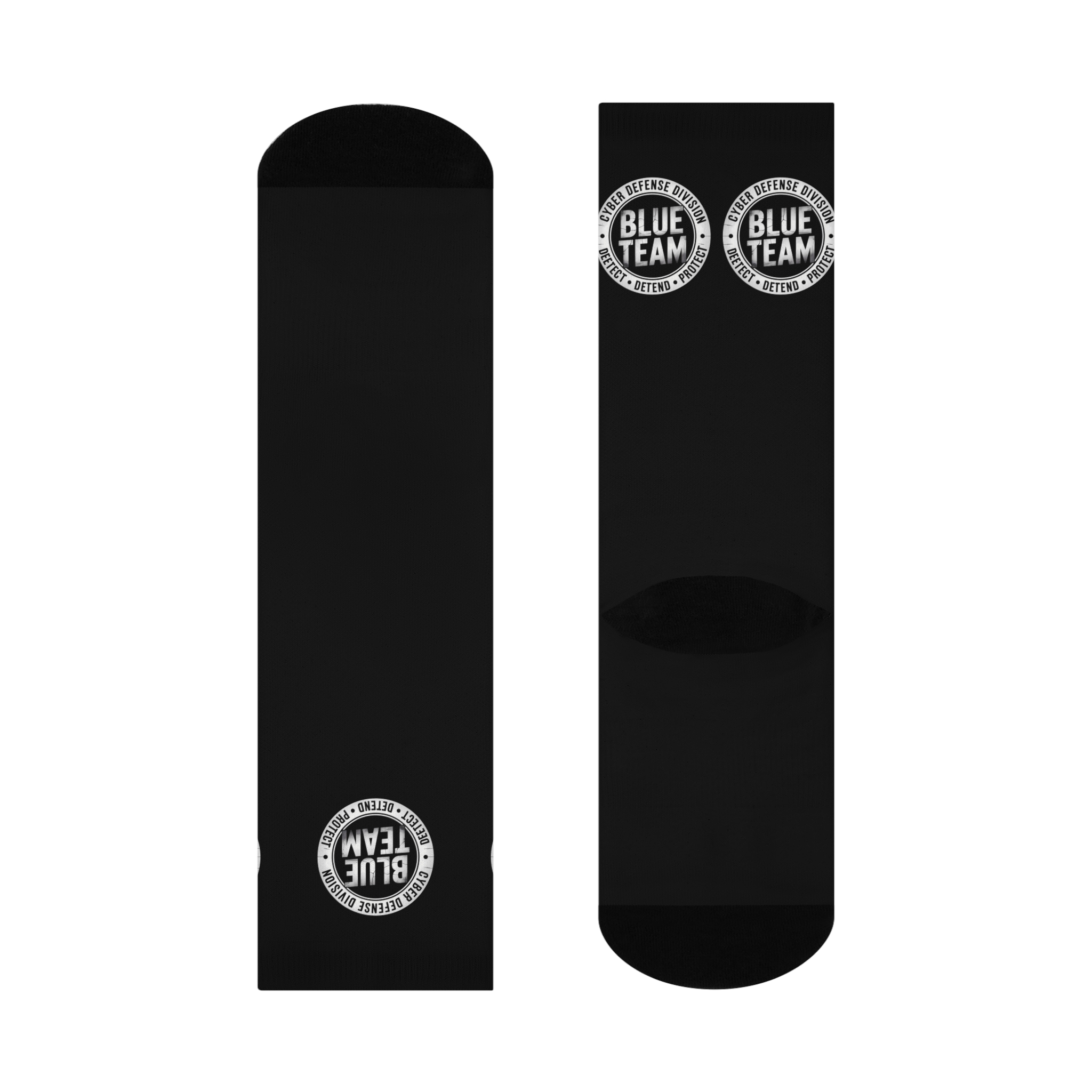 Step up your cyber defense game with these CyberCrew Socks designed for the defenders in the Blue Team. Engineered with comfort and a no-nonsense attitude, these socks provide a snug fit without restricting, while the cushioned bottoms give you the edge during long shifts or intense gaming sessions. The standout white circular emblem boldly proclaims your role from mid-calf to cuff with precision: “CYBER DEFENSE DIVISION” encircles the motto “DETECT • DEFEND • PROTECT” surrounding a sharp “BLUE TEAM” insignia in a clean sans-serif font.