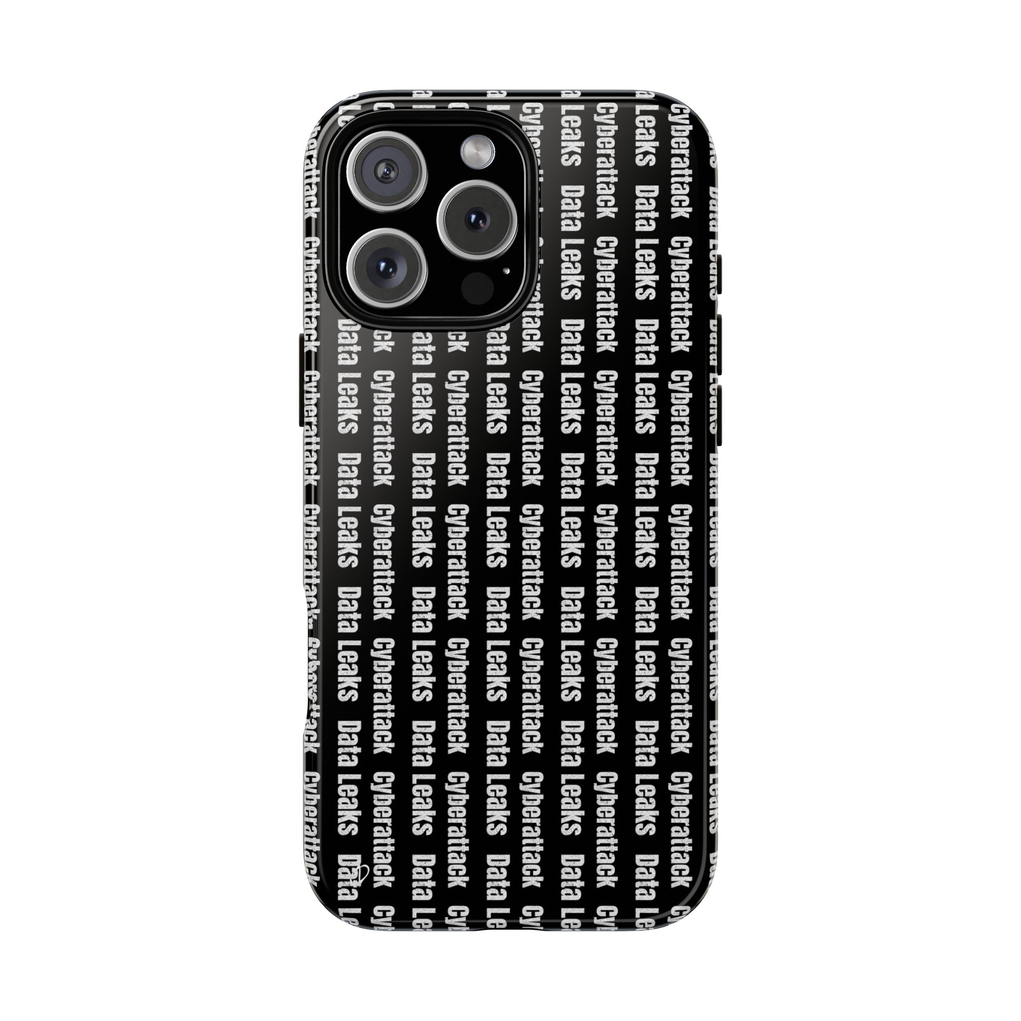 Engineered for those who live on the front lines of the digital age, this tough phone case blends high-impact protection with a sharp, cyber-inspired graphic design. Featuring a bold, all-over pattern of ‘Cyberattack’ and ‘Data Leaks’ in staggered rows, this case makes a statement about privacy and the ever-present digital threats we face. it hugs every curve while leaving your advanced camera system fully accessible.