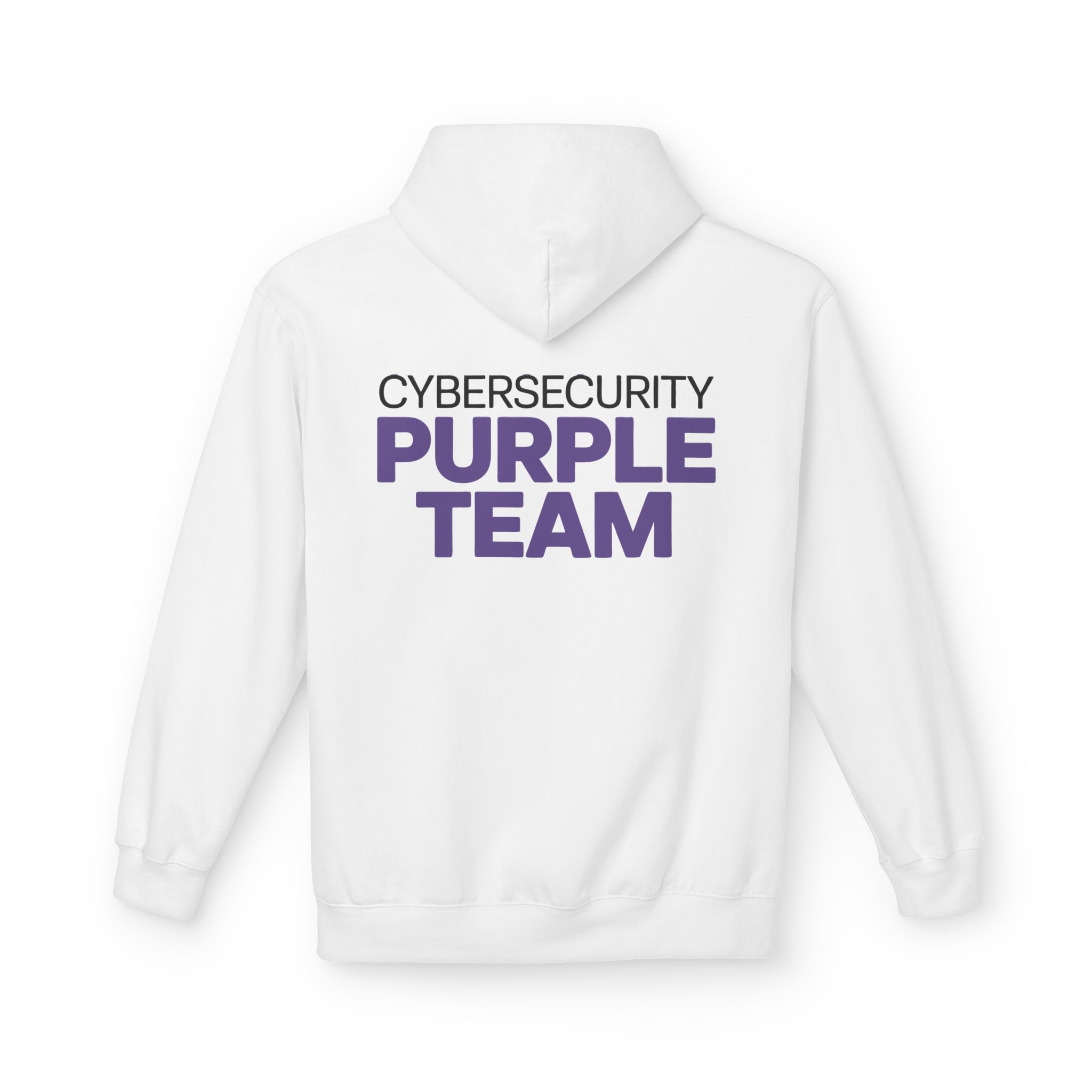 This premium white hoodie features a clean, professional aesthetic suitable for the office, conferences, or casual wear. The front showcases a subtle “PURPLE TEAM” logo on the left chest, while the back makes a bold statement with a large “CYBERSECURITY PURPLE TEAM” graphic. Whether you are a penetration tester, a SOC analyst, or a security consultant, this apparel highlights your role in unifying security operations.