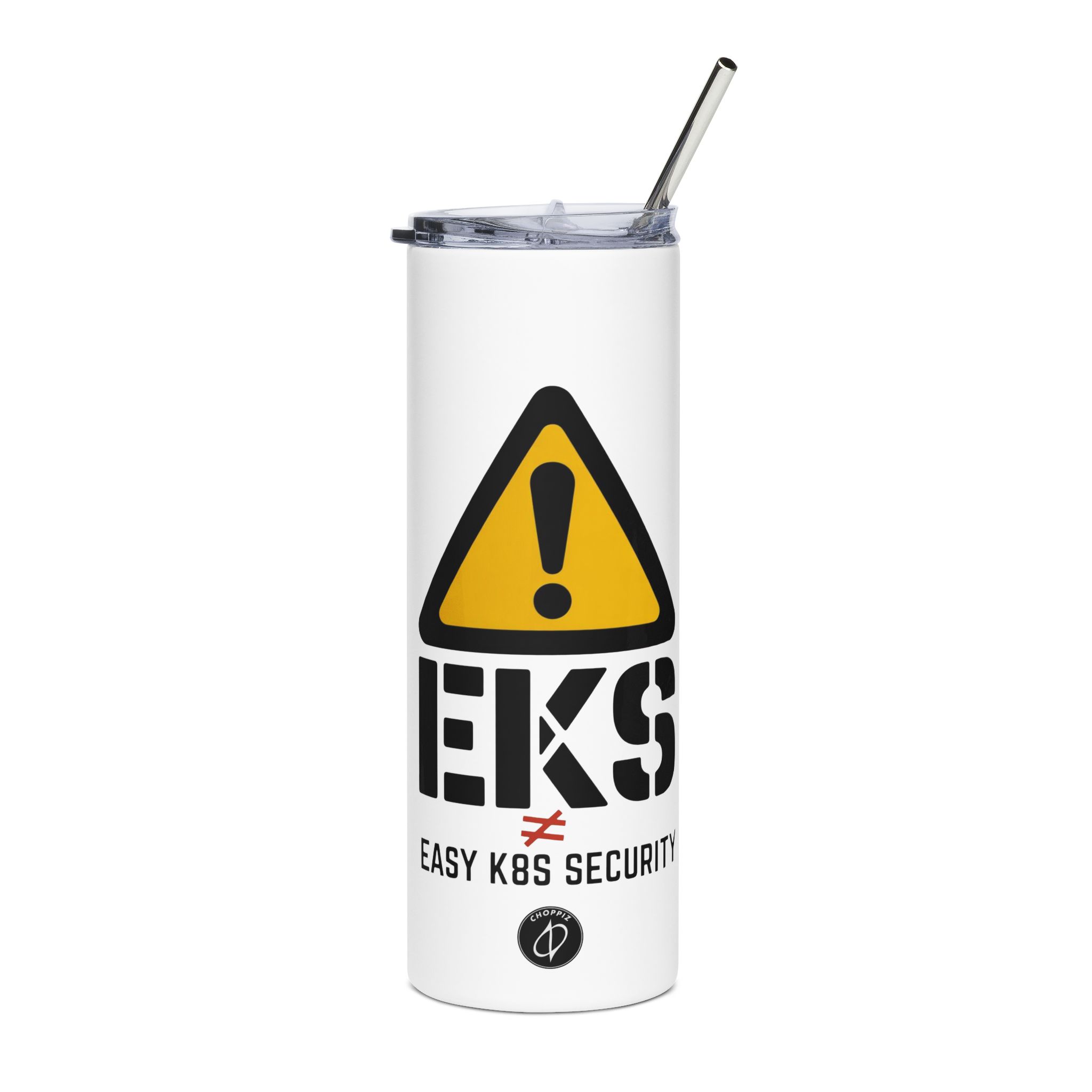 Step up your cybersecurity style with The EKS Security Warning Tumbler, designed for developers, DevOps pros, and cloud warriors who know Kubernetes isn’t always a walk in the park. This 20oz slender tumbler features sharp, tech-driven graphics including the iconic caution triangle, a bold EKS emblem, and the unmistakable ‘not equal to’ symbol, all driving home the message that securing Kubernetes with EKS isn’t easy.