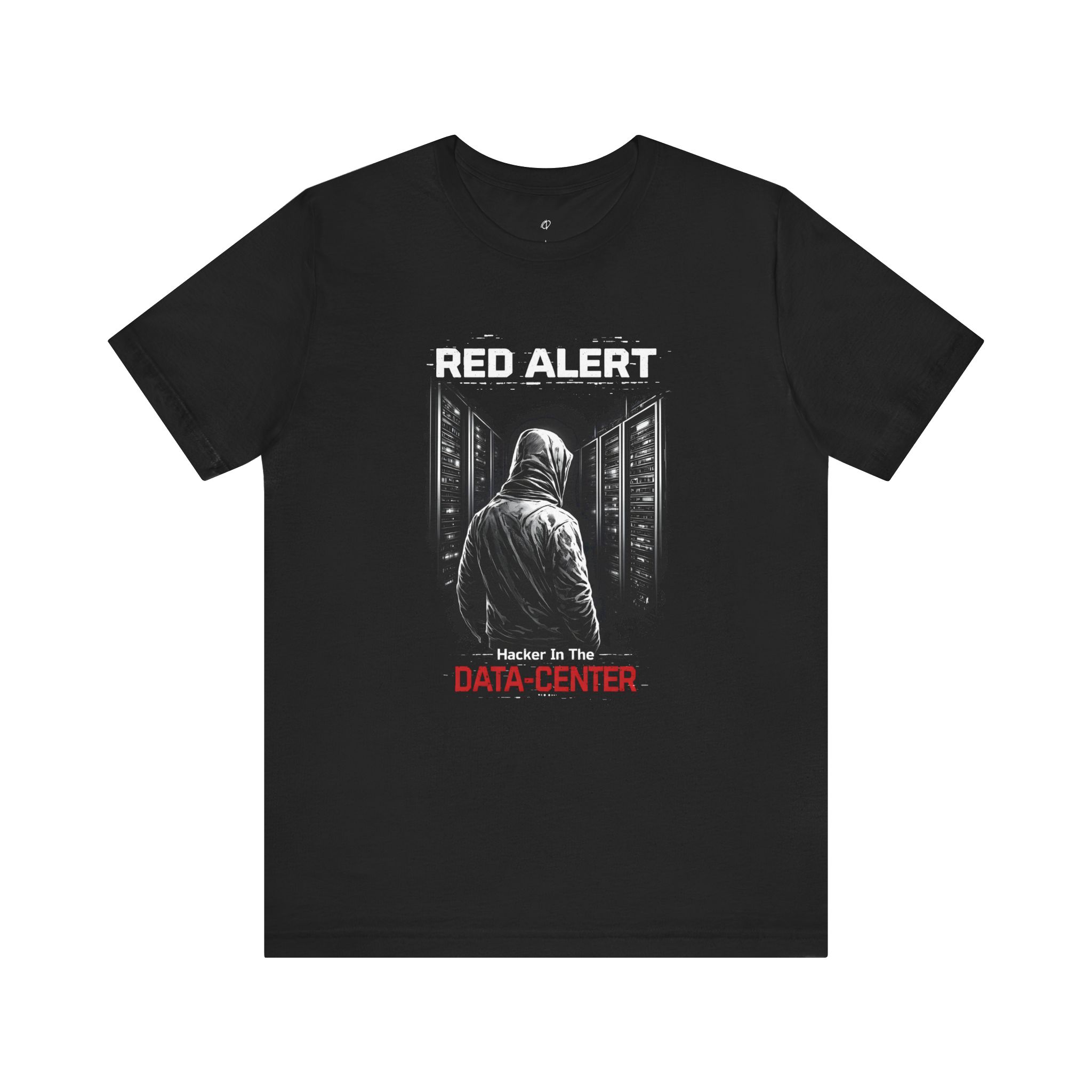 The Red Alert Hacker in the Data Center t-shirt is a cybersecurity shirt built for professionals who handle real-world security incidents. Featuring a hooded hacker standing between server racks with the bold text “Red Alert – Hacker in the Data Center,” this design reflects breach detection, network monitoring, and incident response inside a live data center environment.