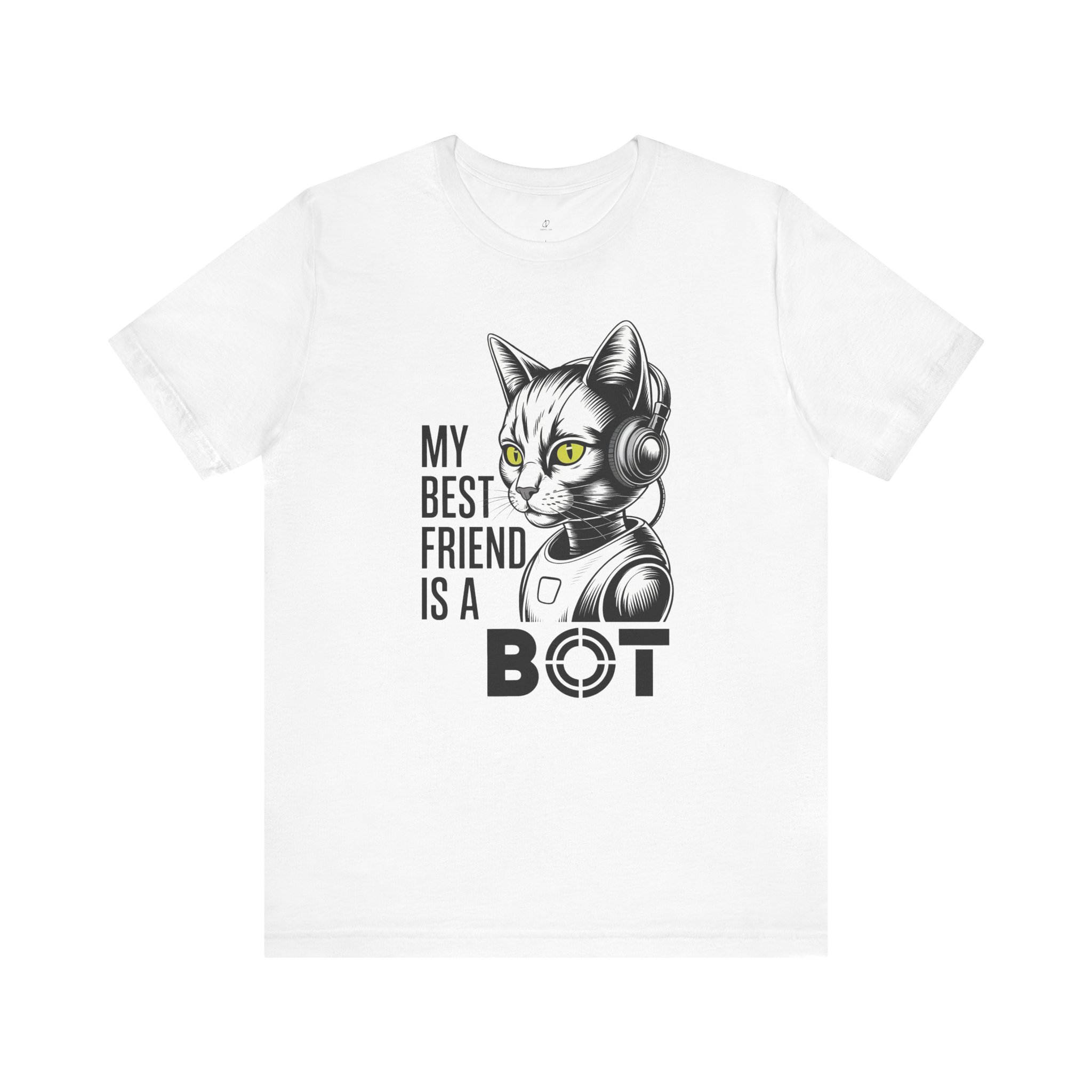 This My Best Friend Is a Bot T-Shirt is built for the cyber and tech crowd that lives online, ships code, and still trusts the bots a little too much. The centered graphic features a detailed sketch-style cat in headphones, with its body turning into robotic plating, wires, and mechanical joints. The glowing neon eyes add that unmistakable AI vibe, while the stacked text reads: “MY BEST FRIEND IS A BOT” with a target-style icon inside the O for a clean, security-minded finish.