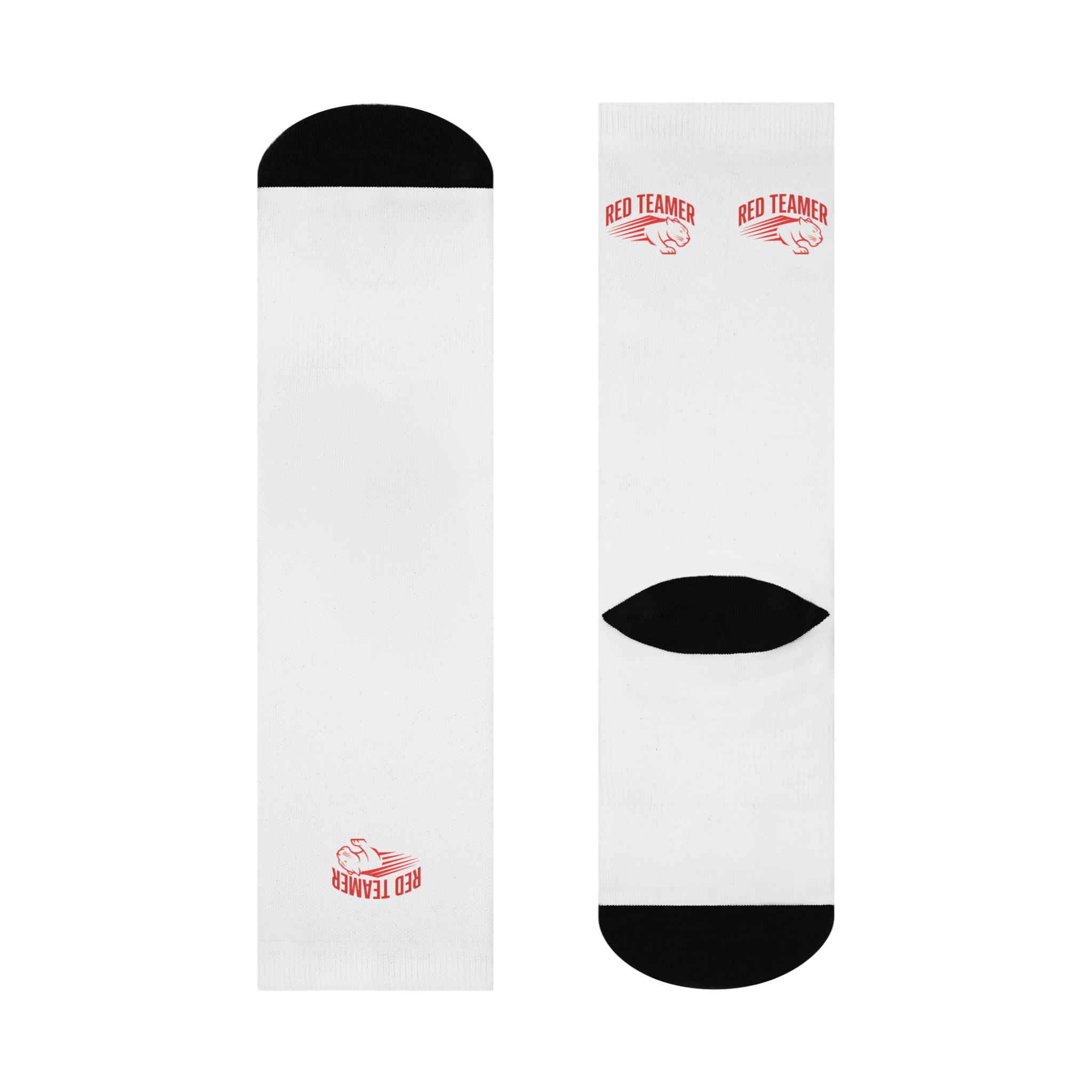 These cushioned crew socks offer daily comfort with personality. The mid-calf length and soft, stretchy knit fit snugly without squeezing, and the padded bottoms ease long days. Bold print runs across the sock, with reinforced black toe and heel for durability. Lightweight yet substantial, the socks maintain crisp, detailed artwork for clear logos or emblems on the calf.