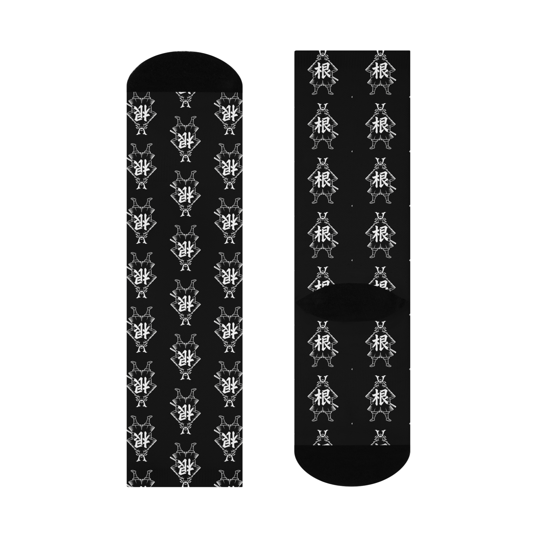 Step into your core with these CyberCrew Socks that blend cyber edge and street-ready style. Designed for those who know strength in roots and precision in every move, these socks fuse functional comfort with a distinctive repeating pattern of samurai figures bearing the Japanese kanji “根” meaning root or origin. The contrast-rich design offers a seamless flow of dynamic warriors ready to defend your feet all day long. Crafted with breathable, stretchy fabric and cushioned soles, these socks provide essential support without sacrificing style. Reinforced toes and heels ensure durability so you can count on them through every hack, mission, or marathon.