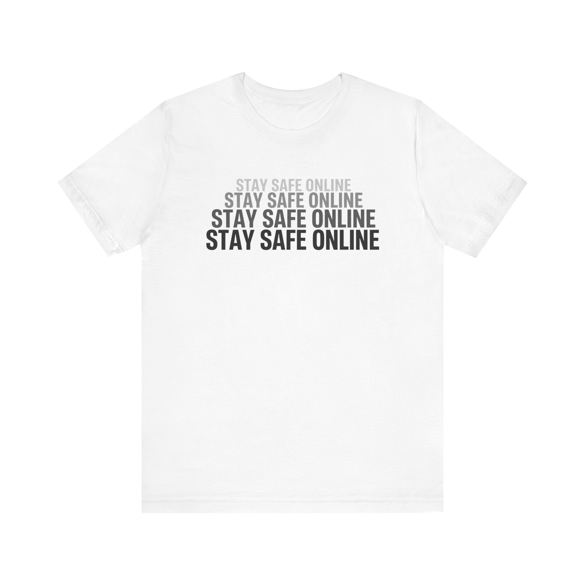 This Stay Safe Online T-Shirt keeps it clean, direct, and undeniably cyber. The chest print stacks the phrase “STAY SAFE ONLINE” four times in a bold, all-caps sans-serif, building a sleek gradient effect that makes the message hit harder line by line. Minimalist typography, maximum signal. No fluff, just a wearable reminder for anyone who lives in browsers, terminals, ticket queues, and threat feeds.