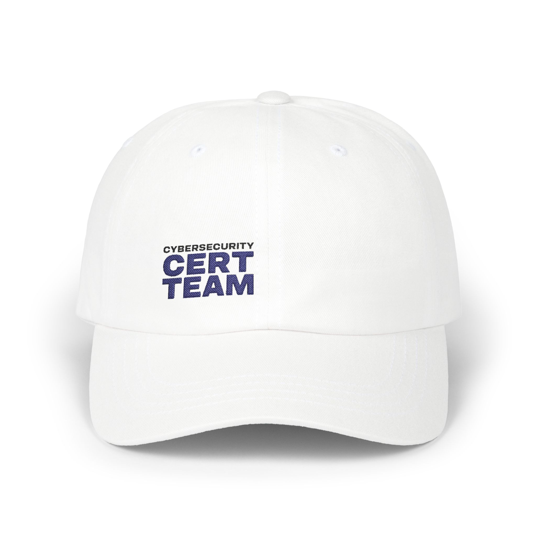 Show your cybersecurity pride with this unstructured dad hat that nails casual tech fashion. Crafted from breathable cotton twill, this cap features a six-panel design topped with a soft fabric-covered button. Its curved visor offers classic sun protection while maintaining a laid-back vibe perfect for conferences, office days, or off-duty moments. The deep indigo embroidered ‘CYBERSECURITY CERT TEAM’ lettering stands out with a bold, raised texture, asserting your geek cred with subtle confidence.