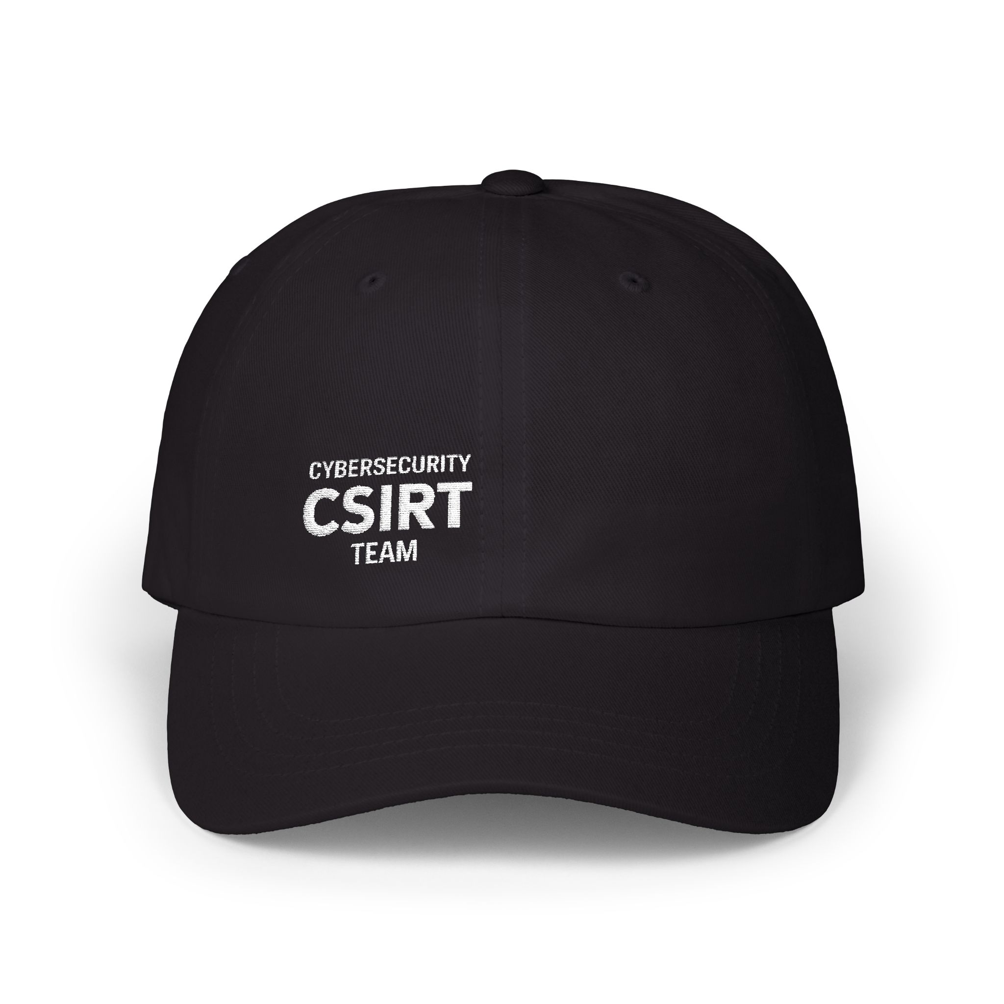 Front and center, bold white embroidery spells out “CYBERSECURITY CSIRT TEAM” in clean, sans-serif lettering that carries a subtle textured vibe, echoing the grit and determination that defines your mission. It’s not just a hat. It’s a badge of honor for any cybersecurity enthusiast wanting to wear their expertise on their head.