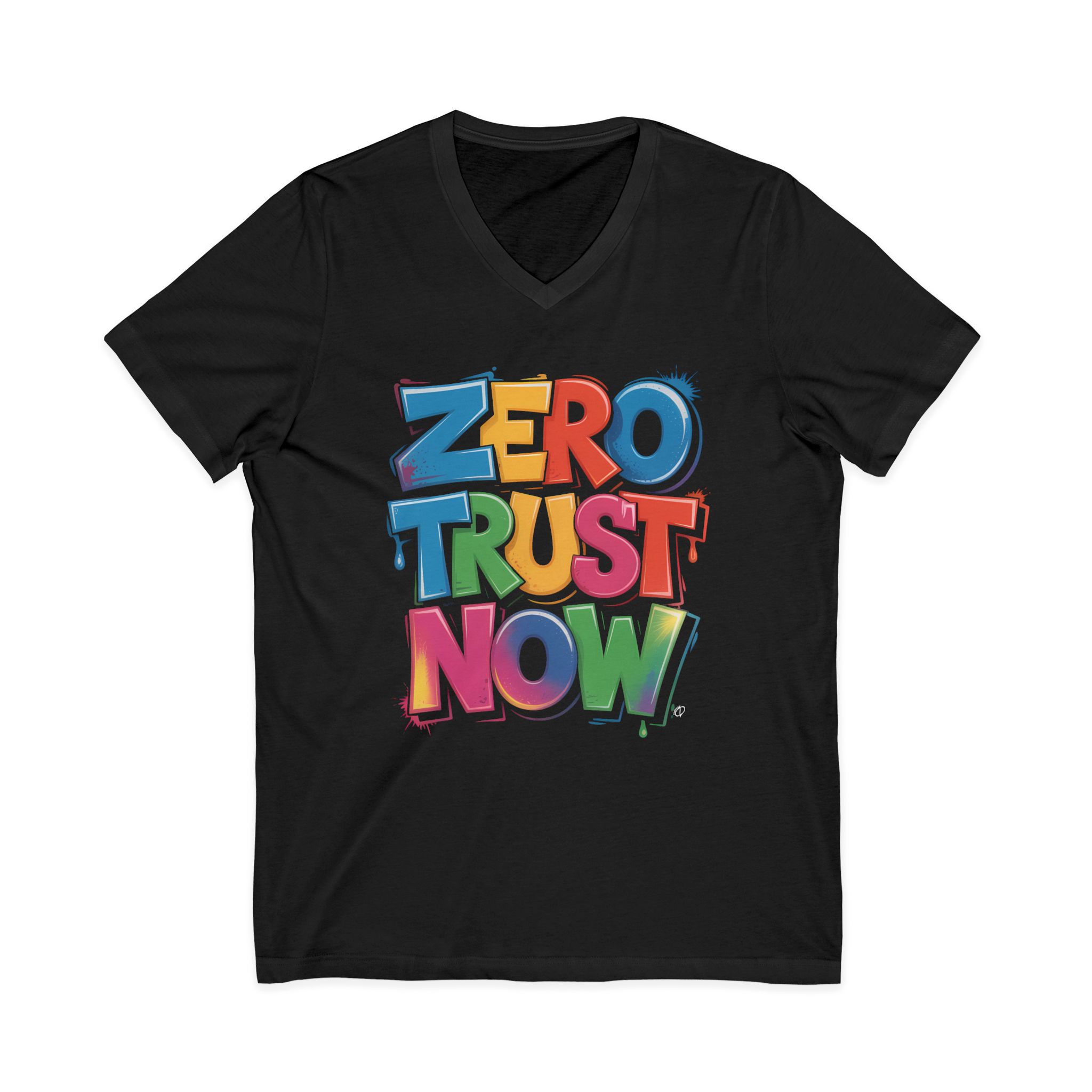 Suit up in this street-smart tee that boldly broadcasts your cybersecurity creed. Featuring the powerful call to action “ZERO TRUST NOW” emblazoned in a vibrant graffiti font, this shirt speaks your language with an urban edge. The bold block letters, finished with a 3D effect and dynamic paint drips, turn a crucial cybersecurity principle into a wearable statement. The V-neck cut frames your look with modern style while premium cotton keeps you comfortable and confident whether you’re coding late or owning the day.